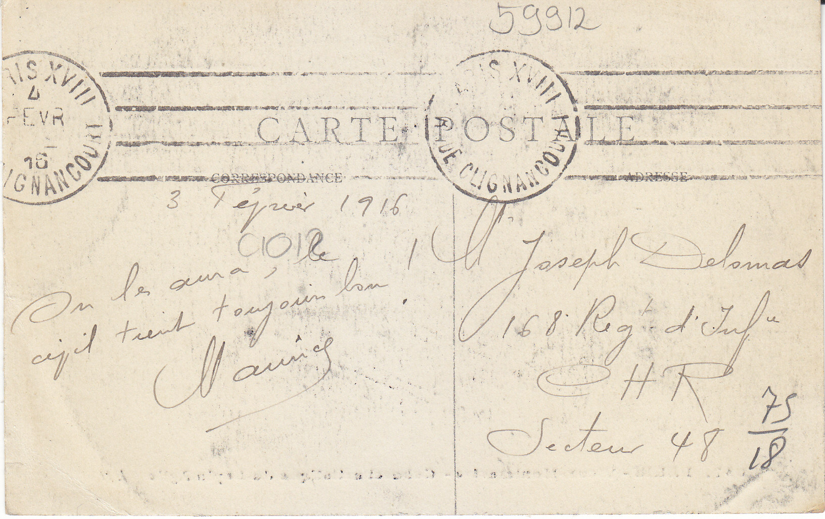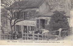 POSTCARD #007 Cabaret artistique du Lapin Agile, Vieux Montmartre [Artistic cafe of the Lapin Agile, Old Montmartre, Paris, France]. 087. J.H. Message dated February 3, 1916. 5.5" x 3.25" VG.