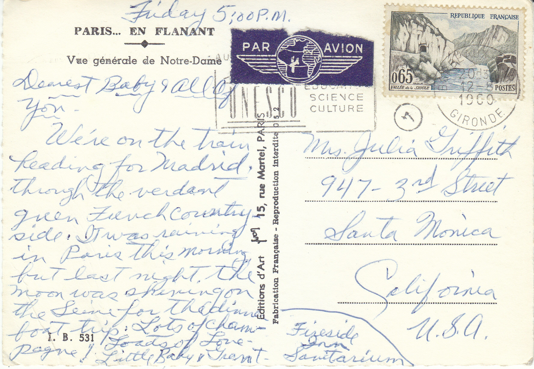 POSTCARD #018 Vue generale de Notre-Dame, Paris [France], En Flânant [Strolling]. I.B. 531.Editions of Art, Yvon (Pierre Yves-Petit, 1886-1969), 15 rue Martel, Paris. Fabrication Francaise [Made in France]. Reproduction interdite 0 5 2. 6" x 4" GD