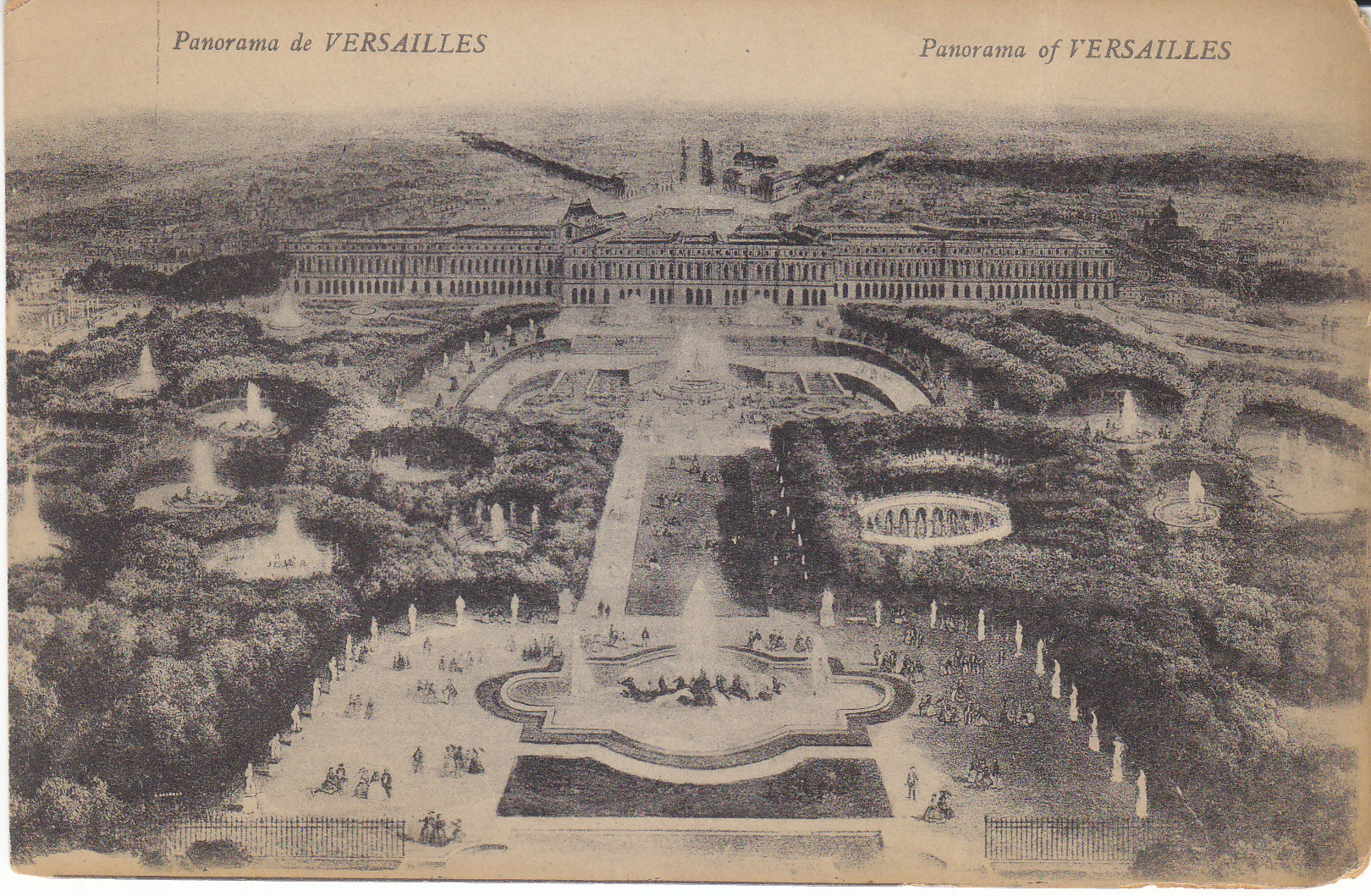 POSTCARD #024 Panorama de Versailles [Panorama of Versailles, France]. Mme. Moreau Edit., Versailles. 5.5" x 3.5" VG