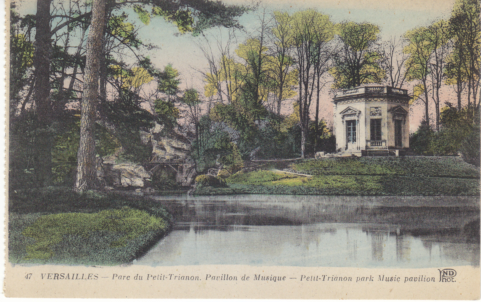 POSTCARD #027 Parc du Petit-Trianon, Pavillon de Musique [Petit-Trianon Park. Music pavilion, Versailles, France]. 47. Ancien Estab. Neurdein et Cie. Imp. Crete, Succ, Corbeil, Paris, 52 Av. de Breteuil, Paris. 5.5" x 3.5" VG