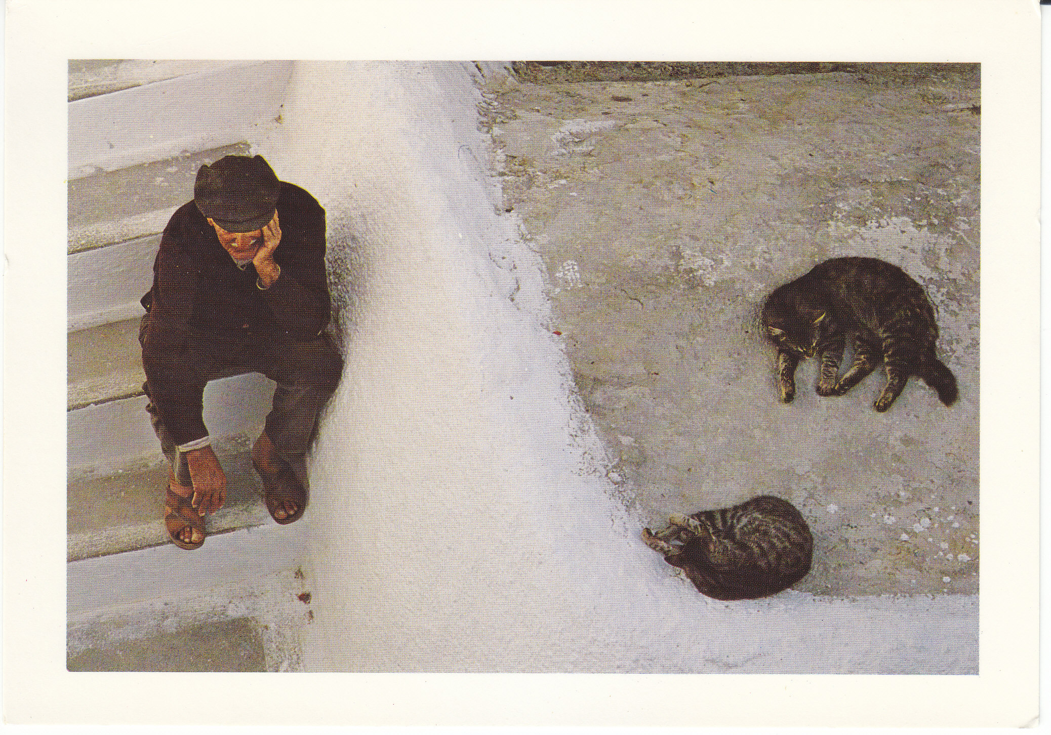 POSTCARD #081 Greece. [Also written in Greek, German, and another language.] The harmony of colours and lines in Cyclades. Copyright Hannibal. No. 403. 31, Kifissodotos Street Ano Petralona. Teleph. 32.29.340. Athens 309, Greece. 4.75" x 6.5" EXC