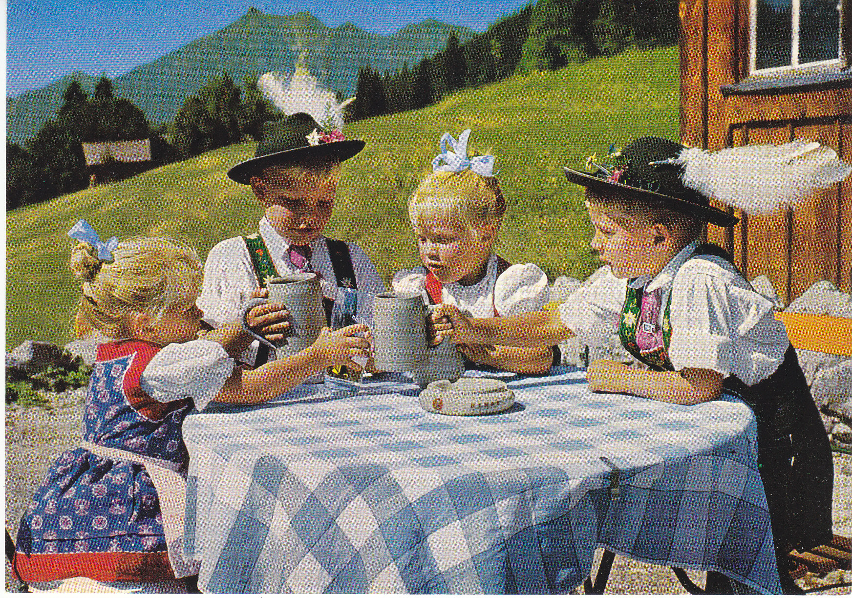 POSTCARD #131 "An Durscht ham ma." (Bavaria, Germany) Nr. 8355. Eine Huber Karte. Dia- und Postkartenverlag Hans Huber KG., D-8100 Garmisch-Partenkirchen [Bavaria, Germany] Tel. 0 88 21 / 5 90 48. 5.75" x 4" EXC