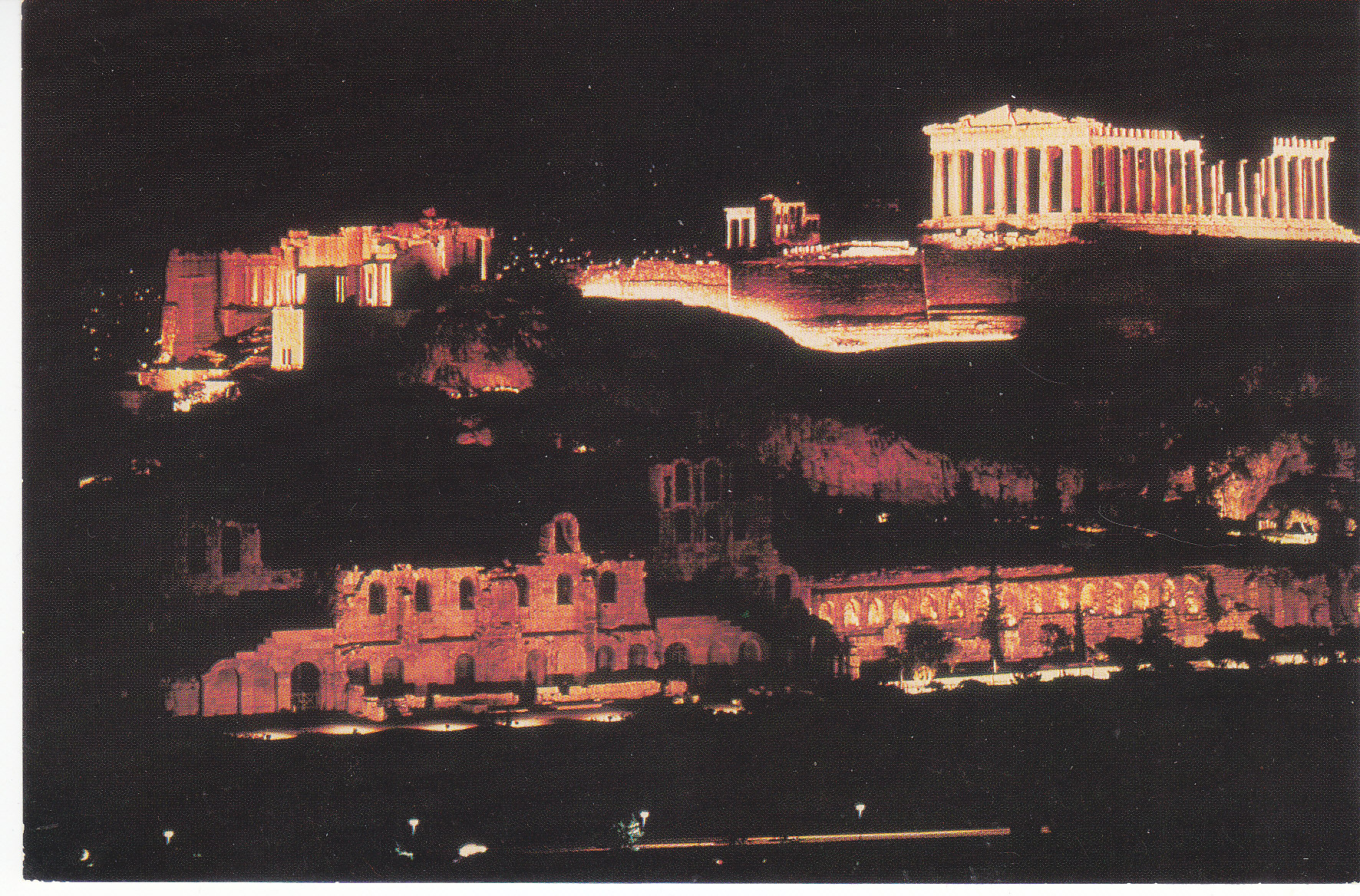 POSTCARD #138 Athens, The Parthenon Illuminated. Greece. Copyright: 178. [Address and other information in Greek.] 6" x 4" EXC