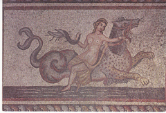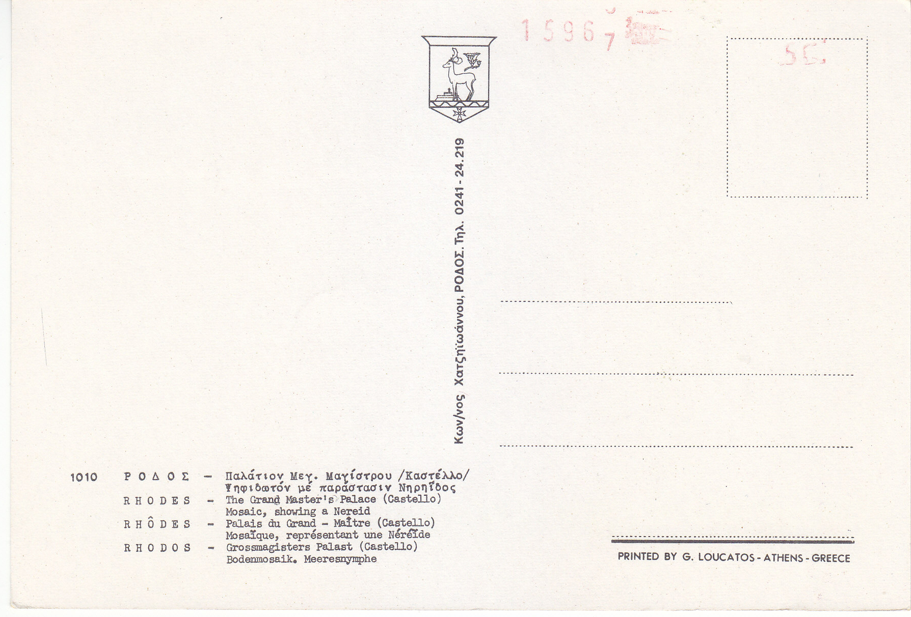 POSTCARD #166 The Grand Master's Palace (Castello) Mosaic, showing a Herald [Rhodes, Greece]. 1010. [Address in Greek.] Printed by G. Loucatos, Athens, Greece. 5.75" x 4" VG