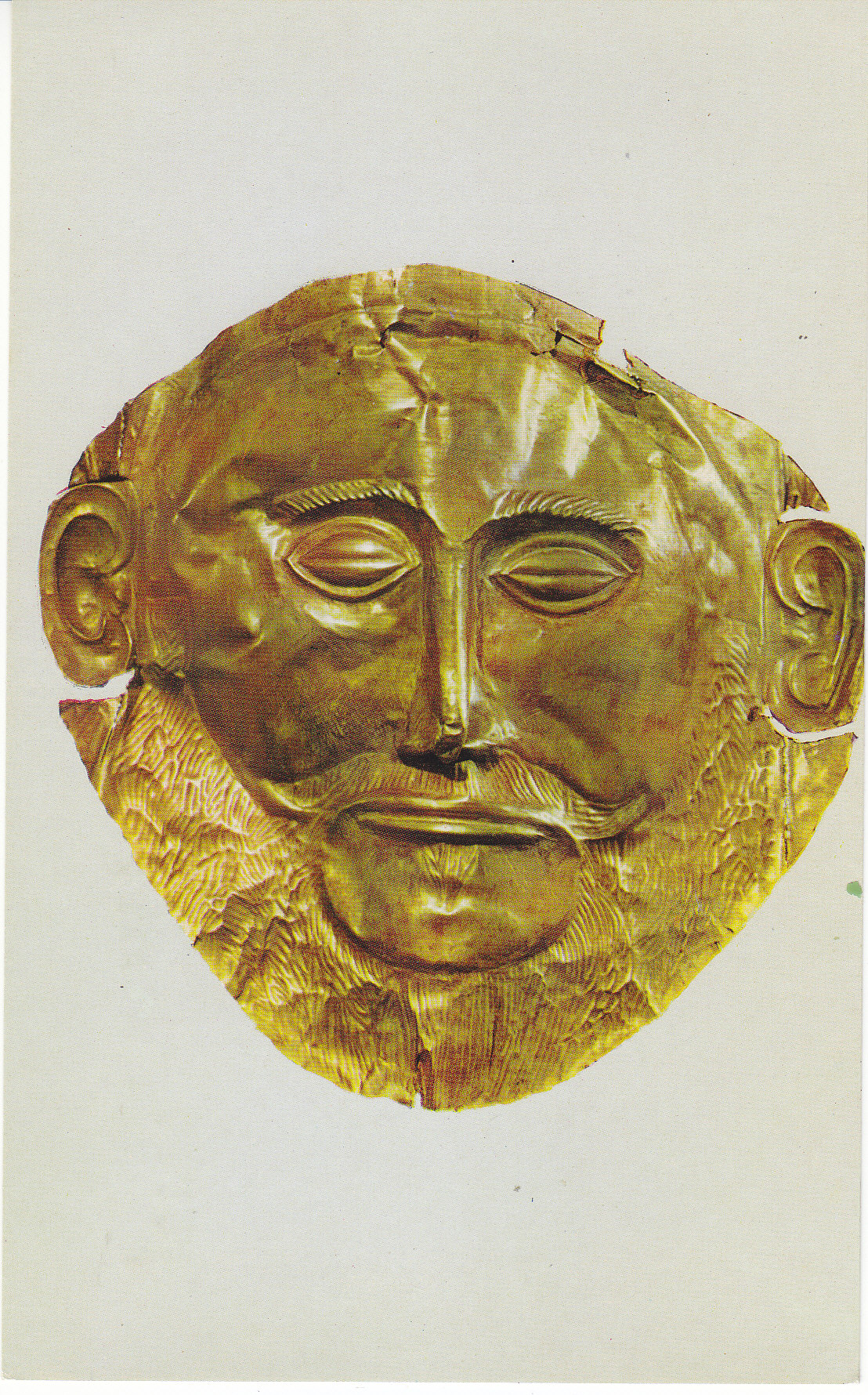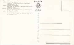 POSTCARD #167 Mask from the Acropolis of Mycenae (middle of 2nd millennium B.C.), National Arch. Museum. Athens [Greece.] 8. Photo Hannibal. [Address in Greek.] Hellas Athens. 6" x 3.75" EXC
