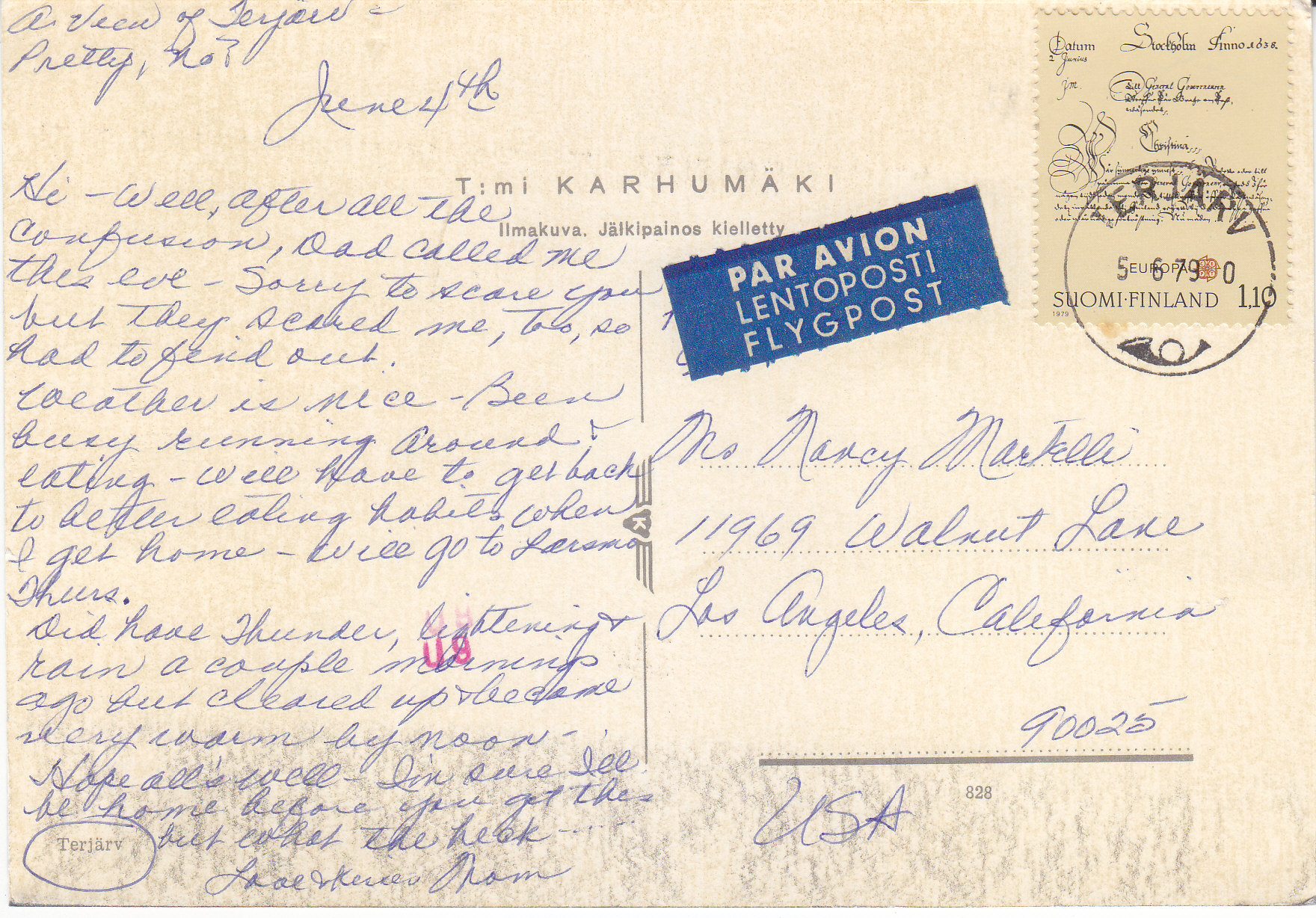 POSTCARD #260 Terjärv [Suomi/Finland]. 2324.Terjärv Fotoklubb. Copyright Pohjois Suoma Lainen. Tuomikortti, Rovaniemi. 960-17601. Painettu Pohjois-Suomessa. Printed in Finland. 5.75" x 4" EXC