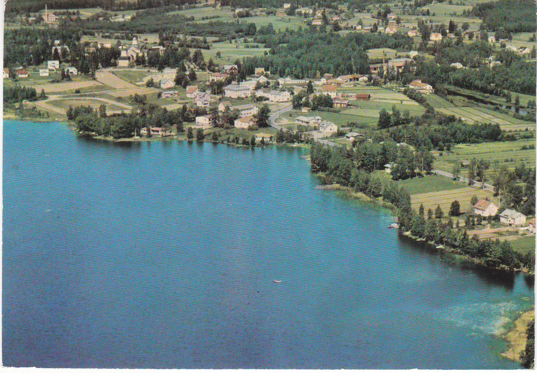 POSTCARD #255 Terjärv church, view of the Helmsjön [Home Sea], and Församlingshemmet [Little Assembly Hall]. Terjärv [Suomi/Finland]. MV vaasa p.212769. Painettu Suomessa. Fotogr.: Byström. 5.75" x 4" EXC
