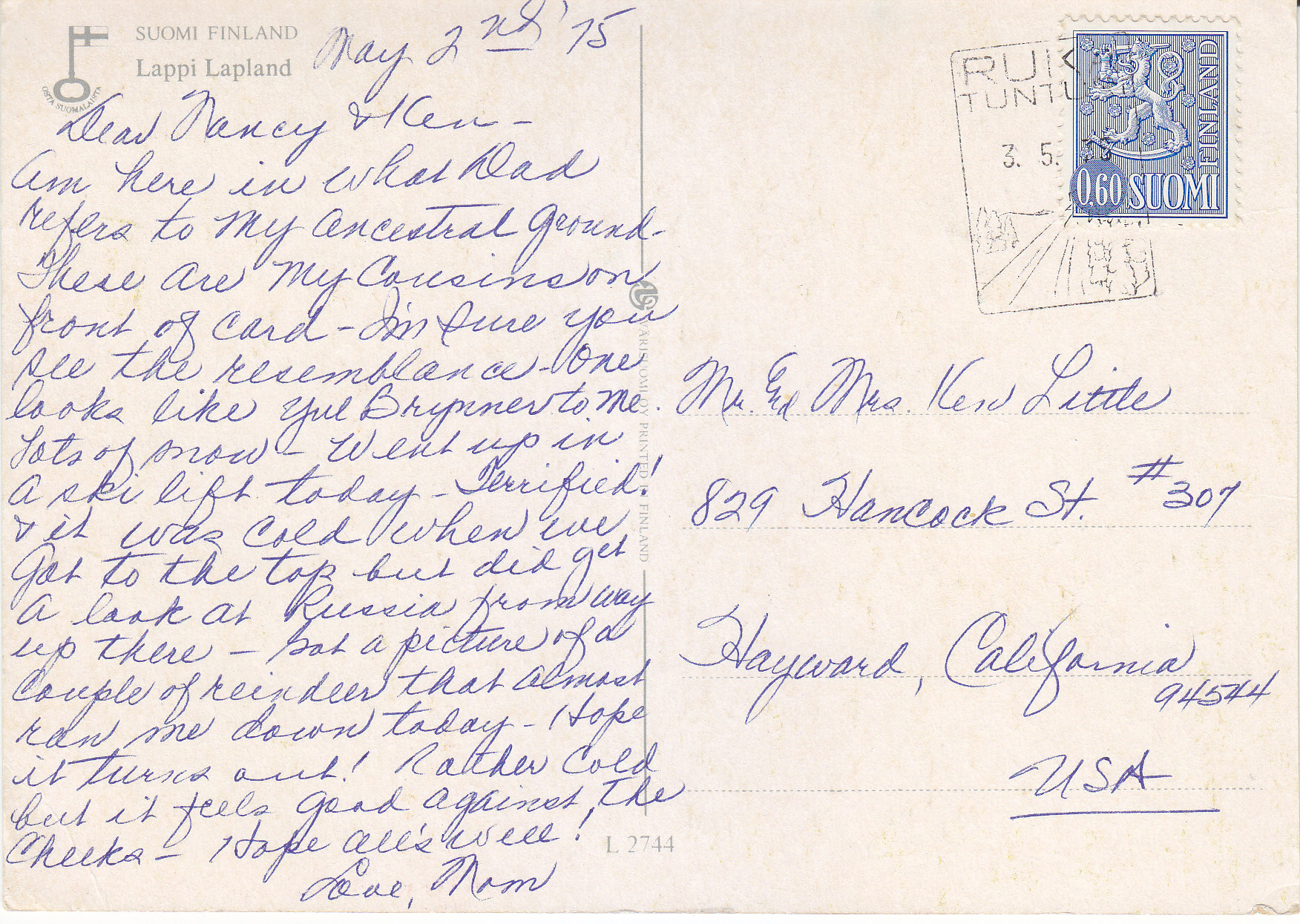 POSTCARD #253 Terveiset Lapista [Greetings from Lapland, Suomi/Finland]. L2744. . Lappi Lapland, Suomi/Finland. Osta Suomalaista. Värisuomi Oy. Printed in Finland. 5.75" x 4" VG