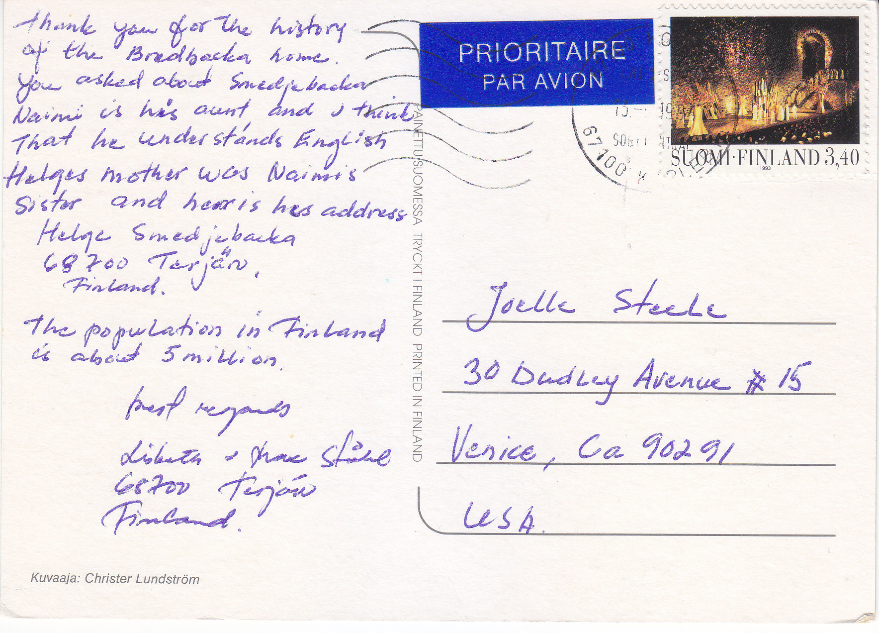 POSTCARD #256 Terjärv-Teerijärvi [Suomi/Finland]. Kuvaaja: Christer Lundström. Painettu Suomessa. Tryckt | Finland. Printed in Finland. 5.75" x 4" EXC