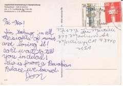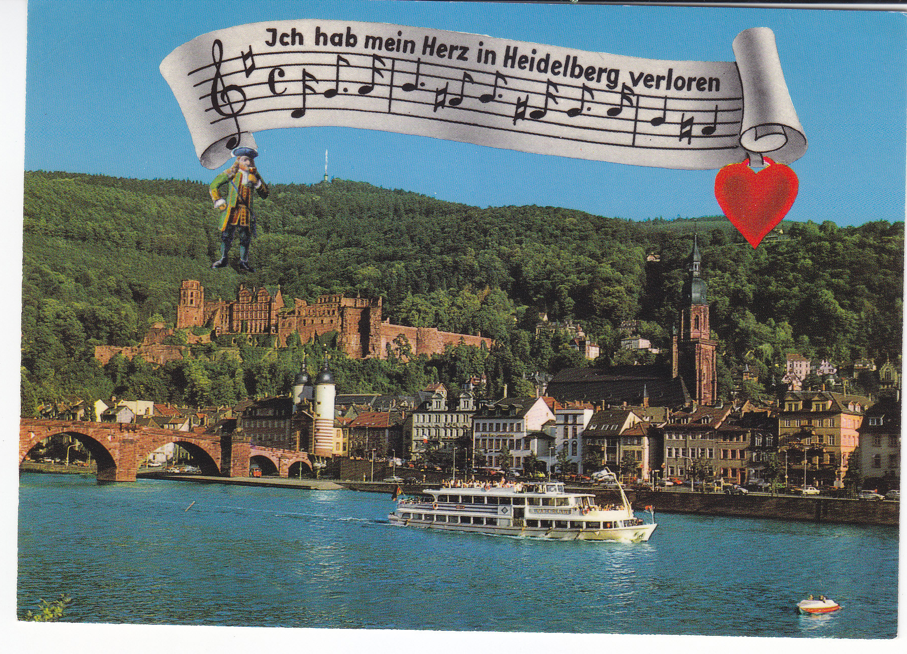 POSTCARD #329 Ich hab mein Herz in Heidelberg verloren [I lost my heart in Heidelberg]. On the Neckar River. Heidelberg [Germany]. Nr. 242. Edmund von König, Heidelberg V Gesetzlich geschützt. Verlag 6909 Dielheim, Postfach 27, Tel. 06222/3509. Original Farbaunahme. 5.75" x 4" EXC