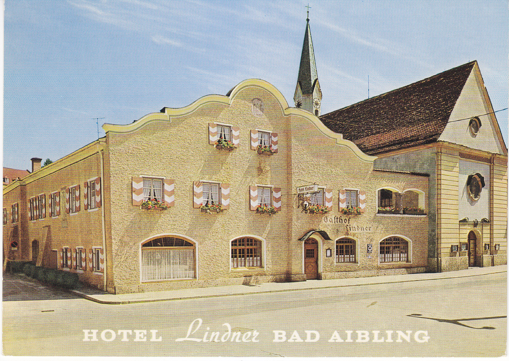 POSTCARD #372 Hotel Lindner, Bad Aibling [Bavaria, Germany]. 110. Jahre im Familienbesitz. Das gut geführte. Haus mit der persönlichen Note. [Family-owned for years. A well run Hotel with the personal touch]. Werbe-Verlag, Vötterl, München, Herthastrasse 42, Telefon 57 28 97. V 103. 5.75" x 4" EXC