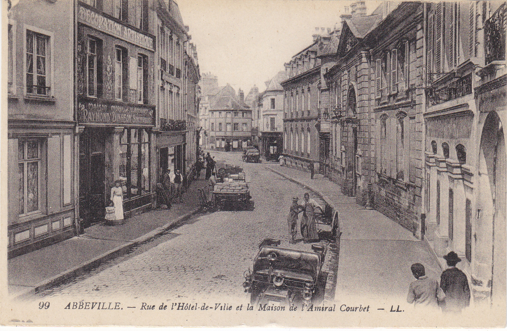 POSTCARD #442 Rue de l'Hotel-de-Ville et la Maison de l'Amiral Courbet [Town Hall Street and House of Admiral Courbet], Abbeville. 99. LL.. Modèle Déposé. Lévy Fils et Cie, Paris [France]. 5.5" x 3.5" EXC