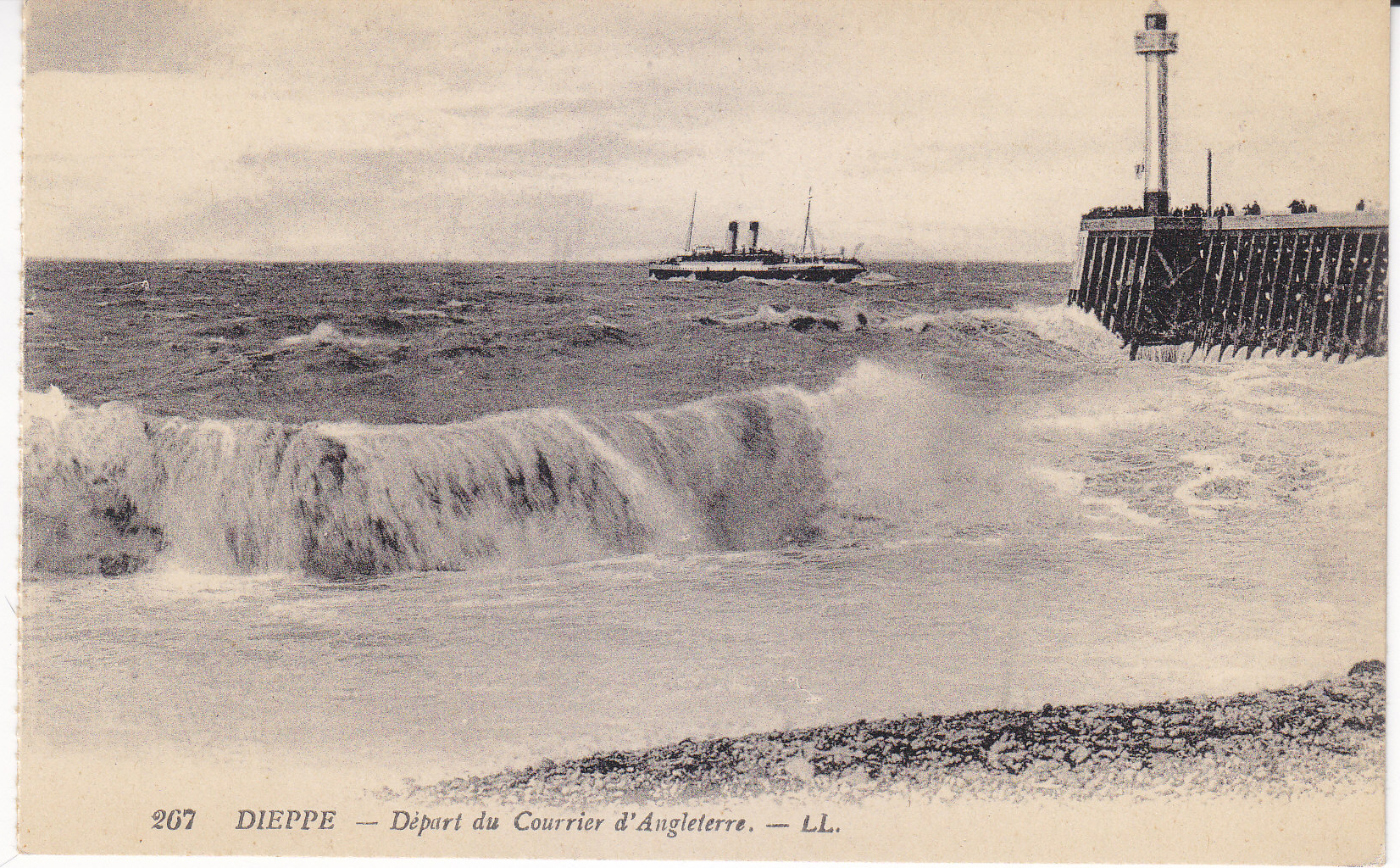 POSTCARD #443 Départ du Courrier d'Angleterre [Departure of the Courier of England], Dieppe [France]. 267. LL. Modèle Déposé. Lévy Fils et Cie, Paris [France]. 5.5" x 3.5" EXC
