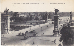 POSTCARD #022 Le Pont Alexandre-III [Bridge of Alexander III, Paris, France]. 82. A.P., E. Papeghin, 24 Rue des Petites-Ecuries, Paris. Rough edge on left where it was torn out of a booklet. 5.5" x 3.5" EXC
