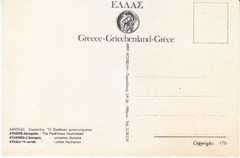 POSTCARD #083 Greece. [Also written in Greek, German, and another language; Address also in Greek.] Photographed by Kostas Vergas. 26. 4.75" x 6.5" EXC