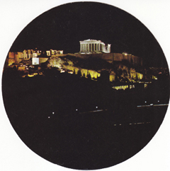 POSTCARD #179 Athens [Greece]. The Illuminated Acroplis. 44. [Address in Greek.]. 6" diameter. VG
