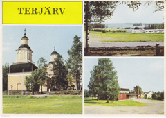 POSTCARD #258 En Hälsning Från Terjärv [Greetings from Terjärv, Suomi/Finland]. Views from town center. Foto: K. Byström. MV vaasa p.212769. Painettu Suomessa. 5.75" x 4" EXC