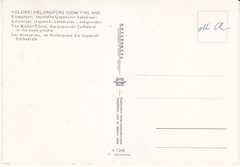 POSTCARD #373 The Market Place, the Uspenski Cathedral in the background. Helsinki/Helsingfors, Suomi/Finland. A 126B. 5-väripainos. Kultokuva. Kustannus Ja Tuonti, Helsinki [Suomi/Finland]. Saatavana myös kuultokuvana. Available also in colour slide. 6" x 4" GD