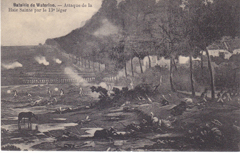 POSTCARD #436 Bataile de Waterloo [Battle of Waterloo], Attaque de la Haie Sainte par le 13e leger [Attack of the Haie Sainte (a farmhouse) by the 13th legion]. J. B. Cuvelier, Bazar de la Station, Braine-1 Alleud. 5.5" x 3.5" EXC