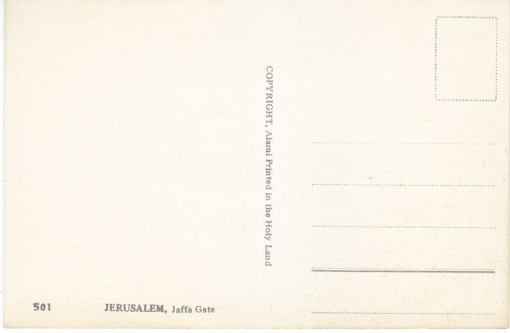 POSTCARD #091 Jerusalem [Israel], Jaffa Gate. 501. Copyright Alami. Printed in the Holy Land. 5.75" x 3.75" EXC
