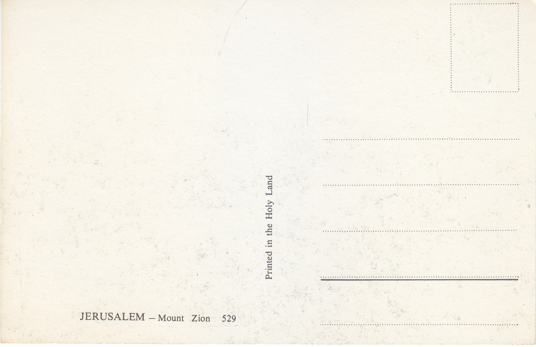 POSTCARD #095 Mount Zion, Jerusalem [Israel]. 529. Printed in the Holy Land. 5.75" x 3.75" EXC