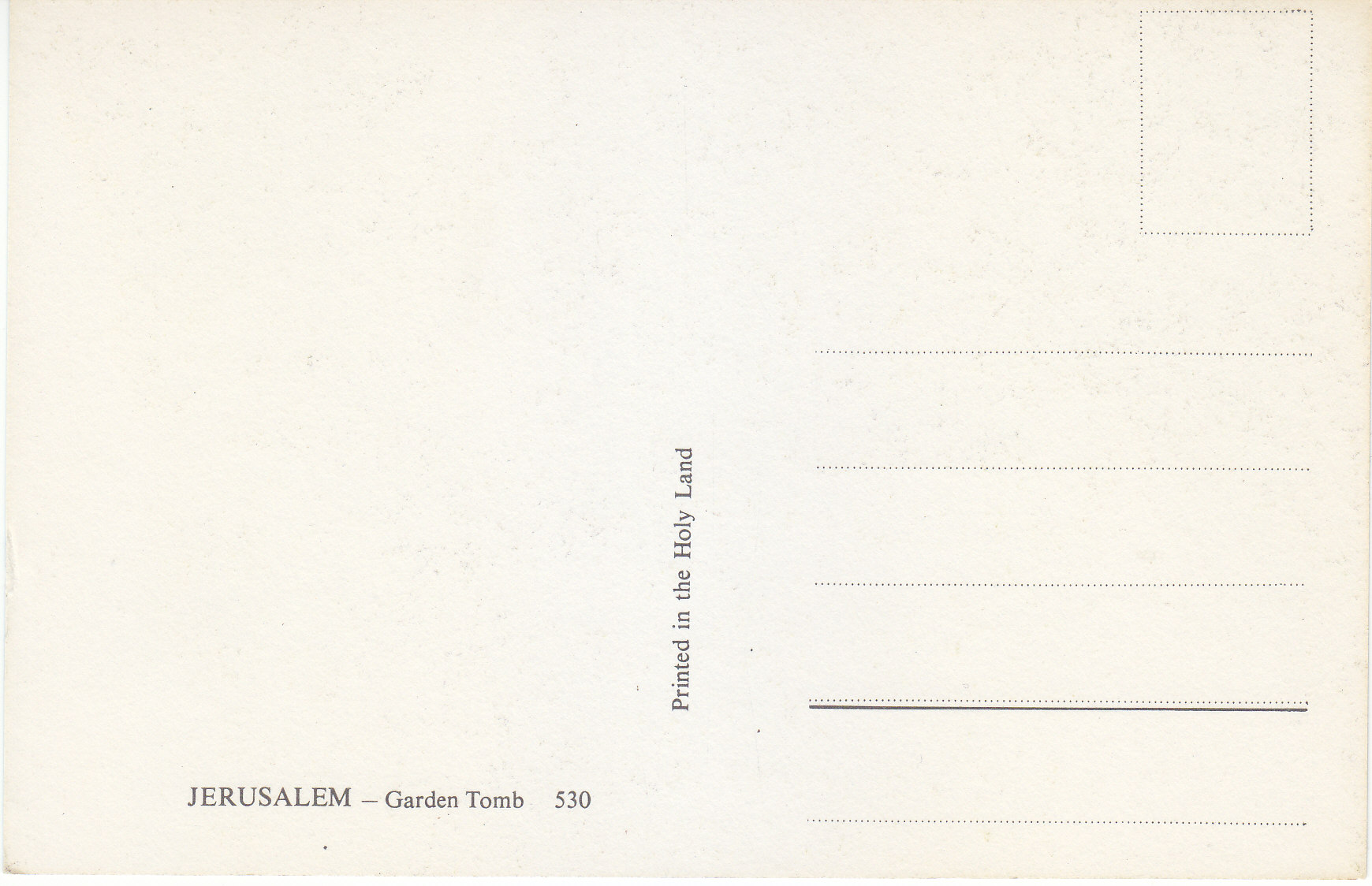POSTCARD #096 Garden Tomb, Jerusalem [Israel]. 530. Printed in the Holy Land. 3.75" x 5.75" EXC