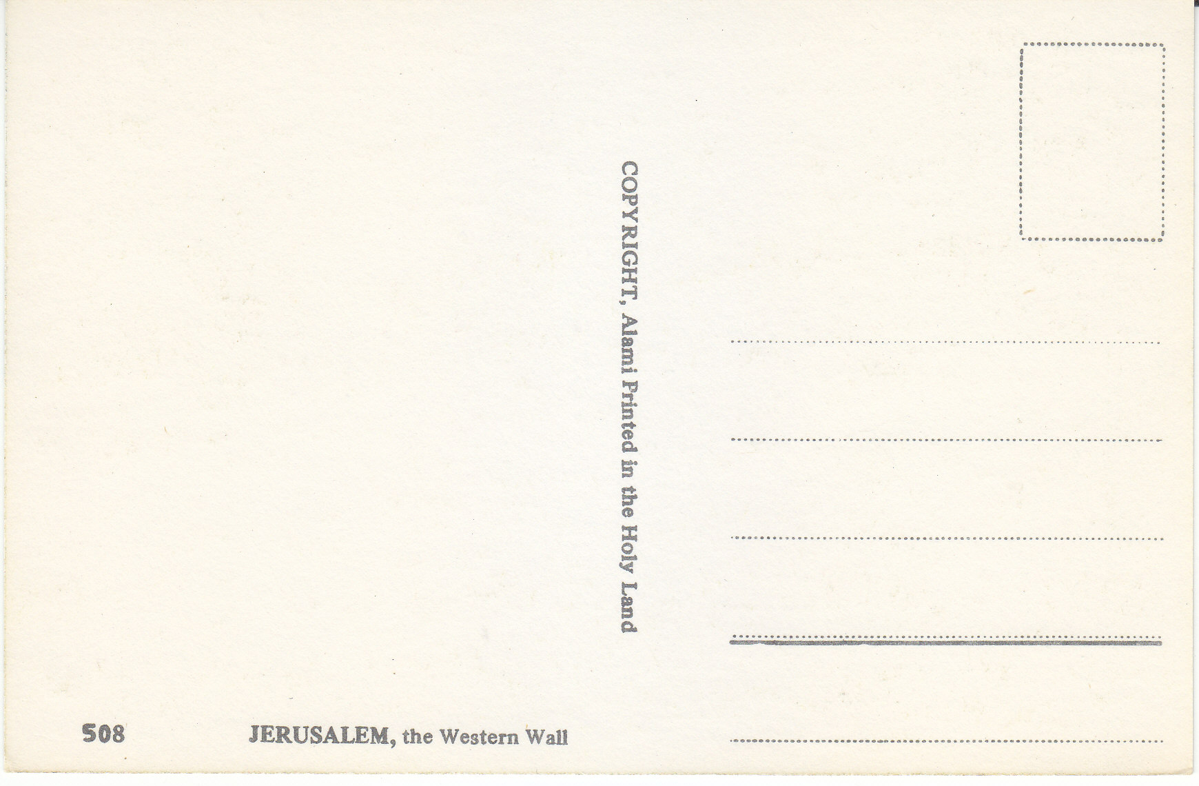 POSTCARD #106 The Western Wall, Jerusalem [Israel]. 508. Copyright Alami. Printed in the Holy Land. 5.75" x 3.75" EXC