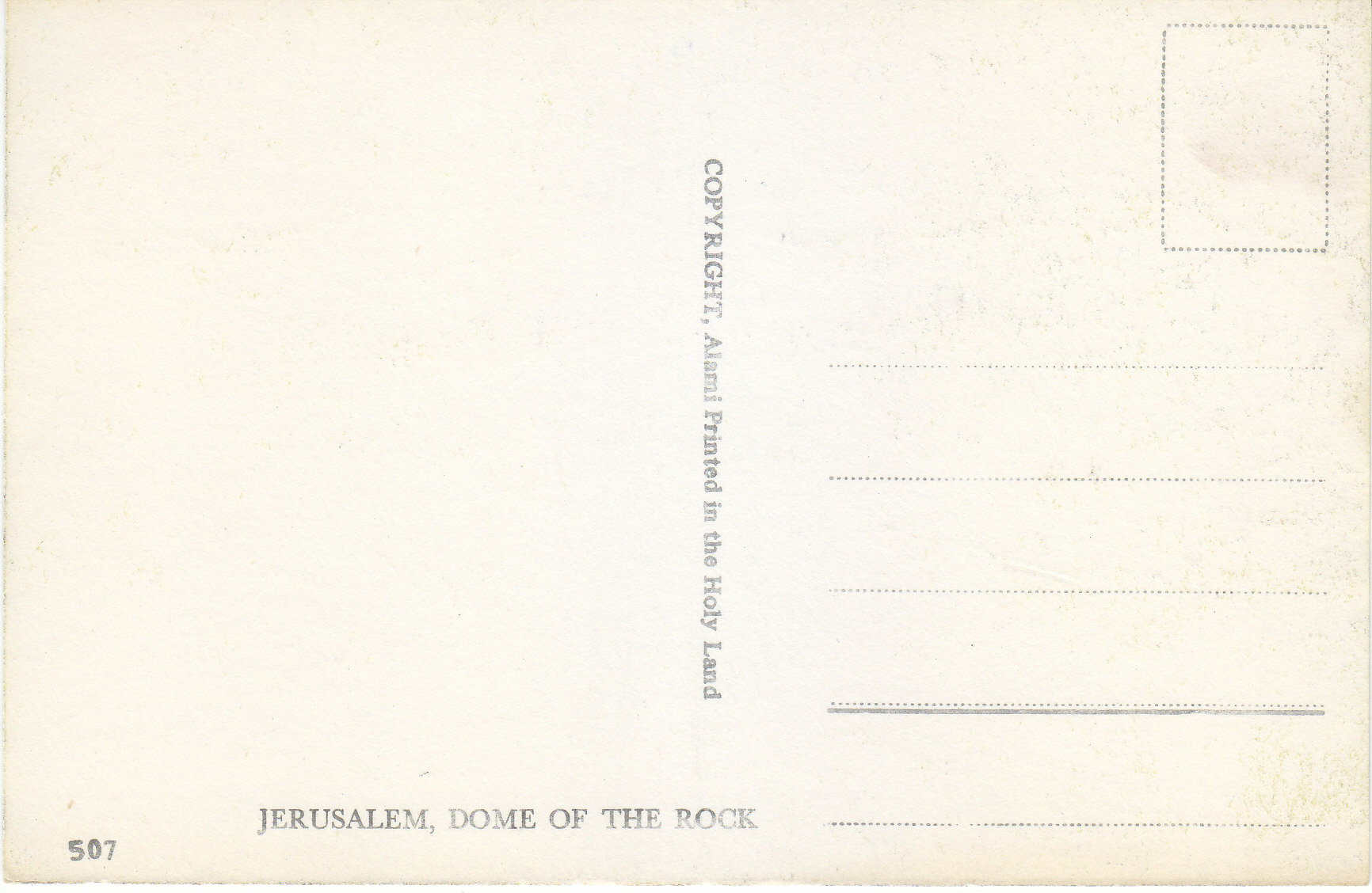 POSTCARD #107 Dome of the Rock, Jerusalem [Israel]. 507. Copyright Alami. Printed in the Holy Land. 5.75" x 3.75" EXC