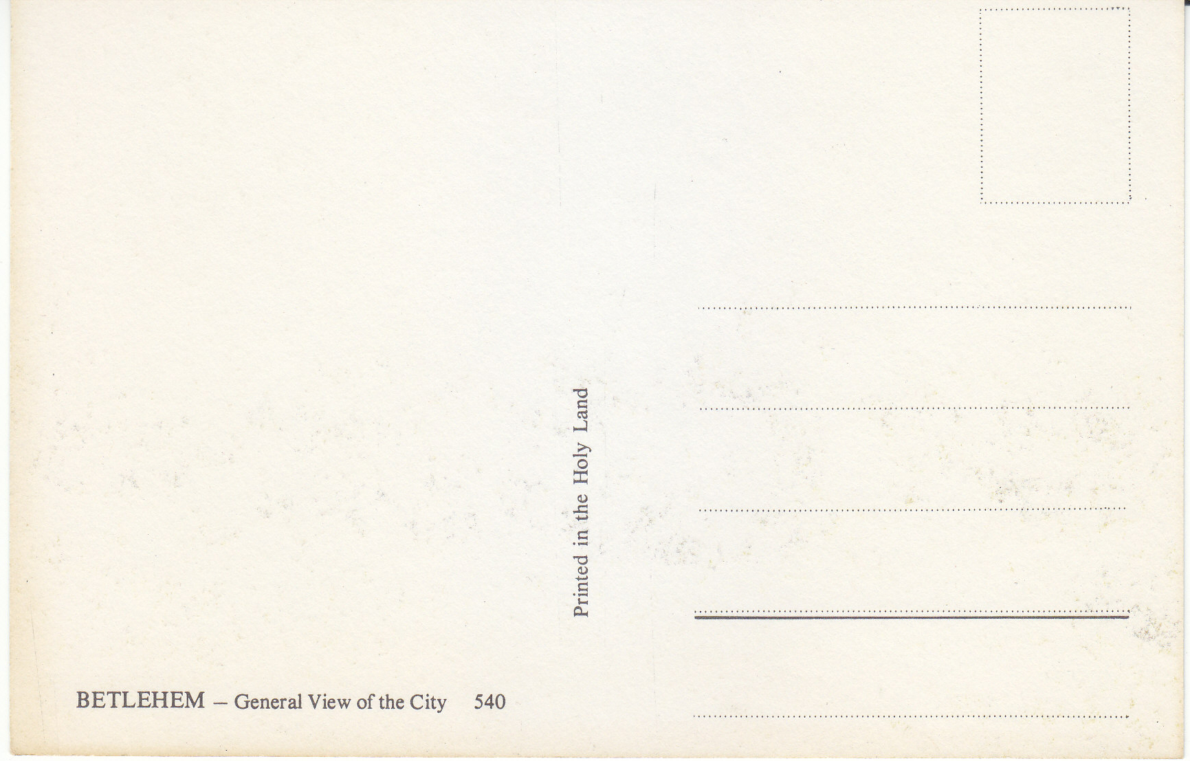 POSTCARD #108 General View of the City, Bethelehem [Israel]. 540. Printed in the Holy Land. 5.75" x 3.75" EXC