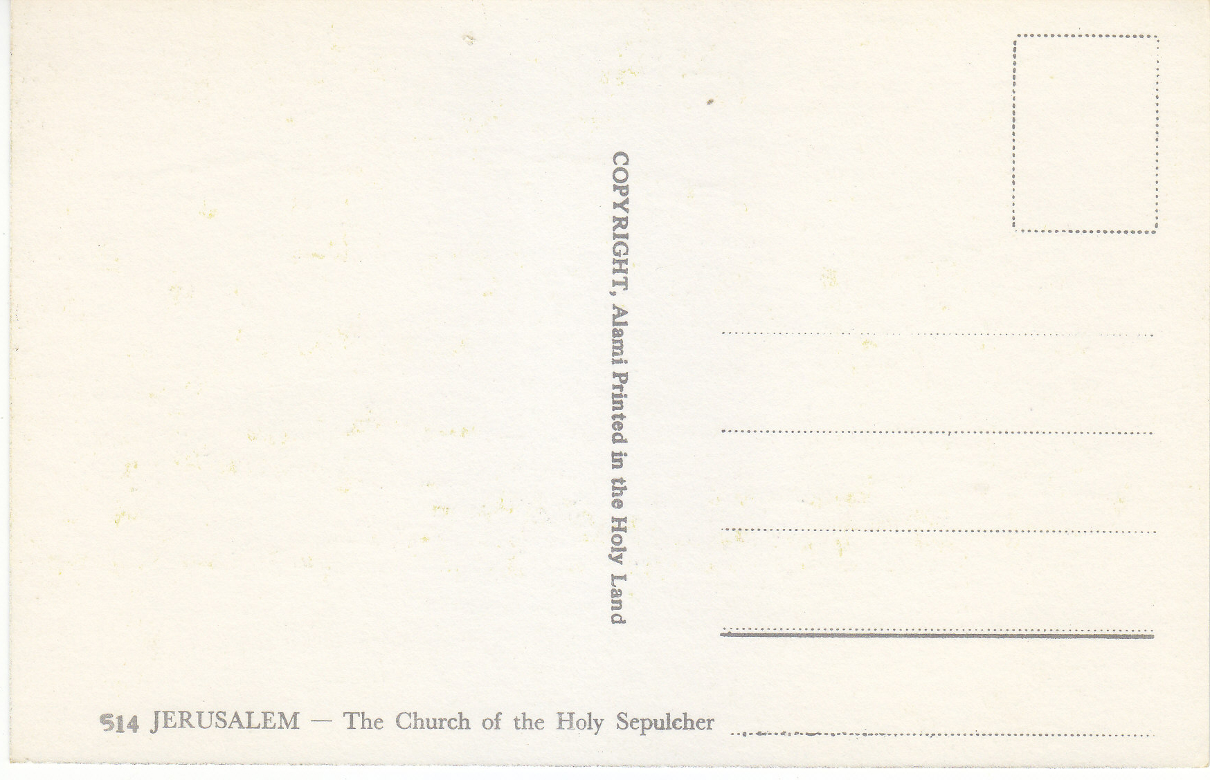 POSTCARD #109 Church of the Holy Sepulcher, Jerusalem [Israel]. 514. Copyright Alami. Printed in the Holy Land. 5.75" x 3.75" EXC