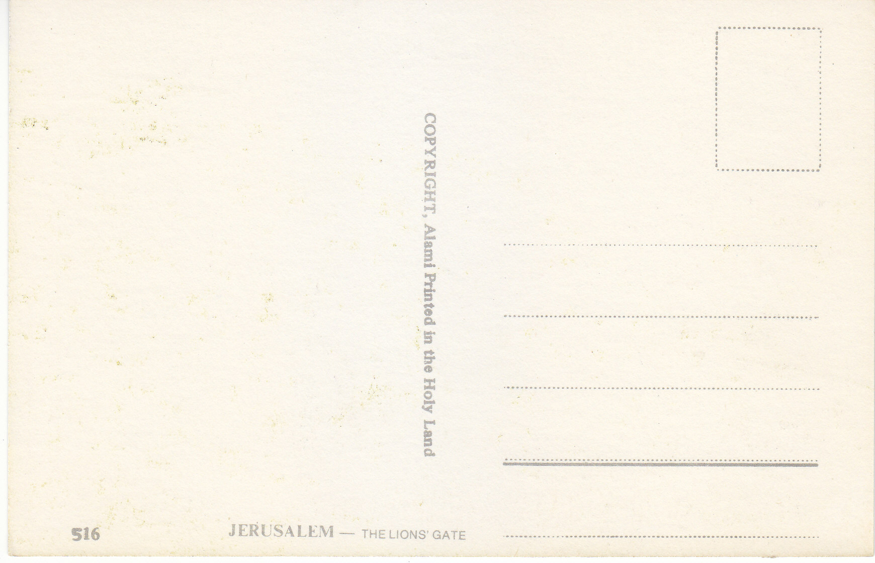 POSTCARD #113 The Lion's Gate, Jerusalem [Israel]. 516. Copyright Alami. Printed in the Holy Land. 5.75" x 3.75" EXC