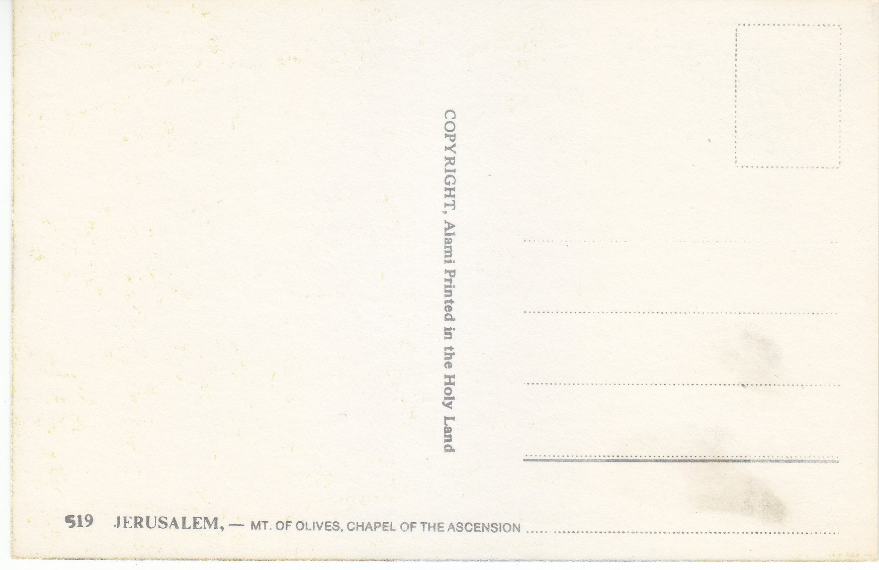 POSTCARD #124 Chapel of the Ascension, Mount of Olivers, Jerusalem [Israel]. 519. Copyright Alami. Printed in the Holy Land. 5.75" x 3.75" EXC