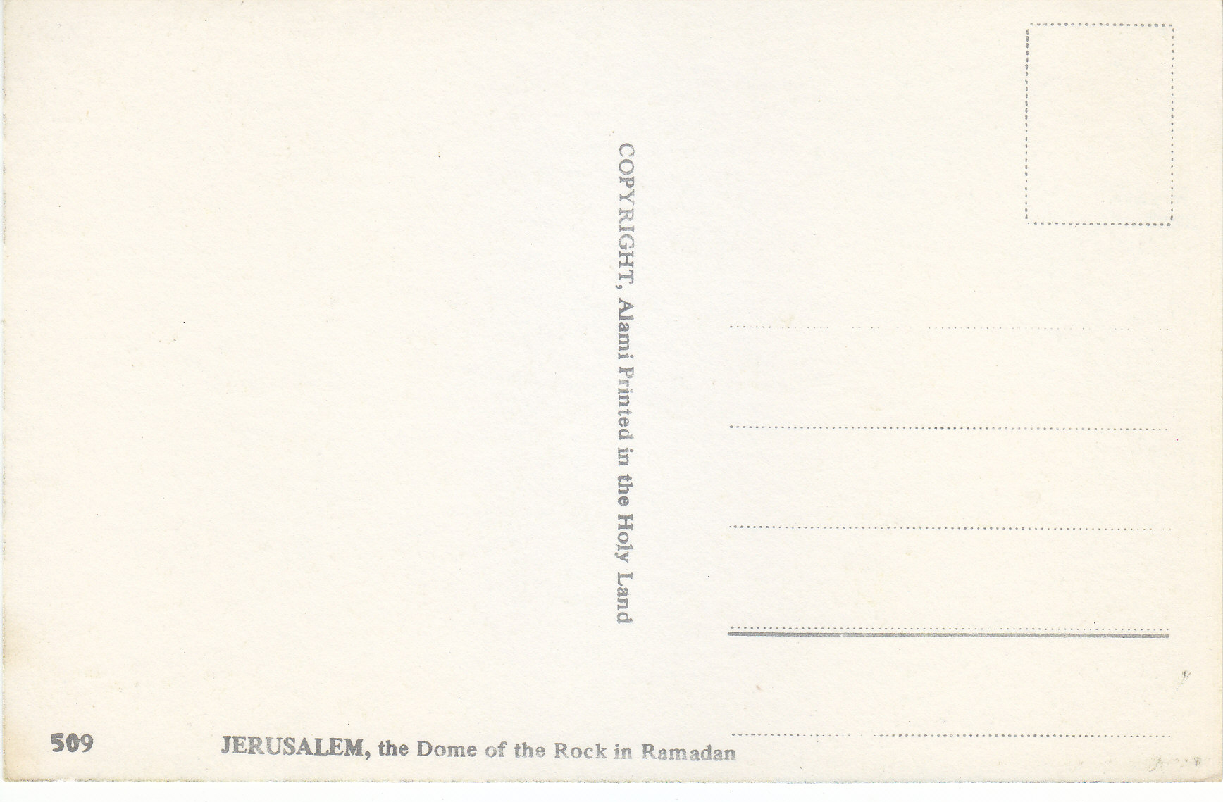 POSTCARD #126 The Dome of the Rock in Ramadan, Jerusalem [Israel]. 509. Copyright Alami. Printed in the Holy Land. 5.75" x 3.75" EXC
