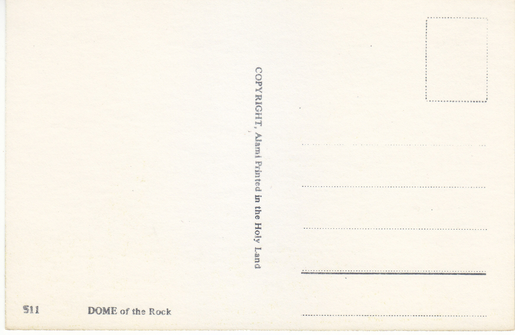 POSTCARD #127 Dome of the Rock, Jerusalem [Israel]. 511. Copyright Alami. Printed in the Holy Land. 5.75" x 3.75" EXC