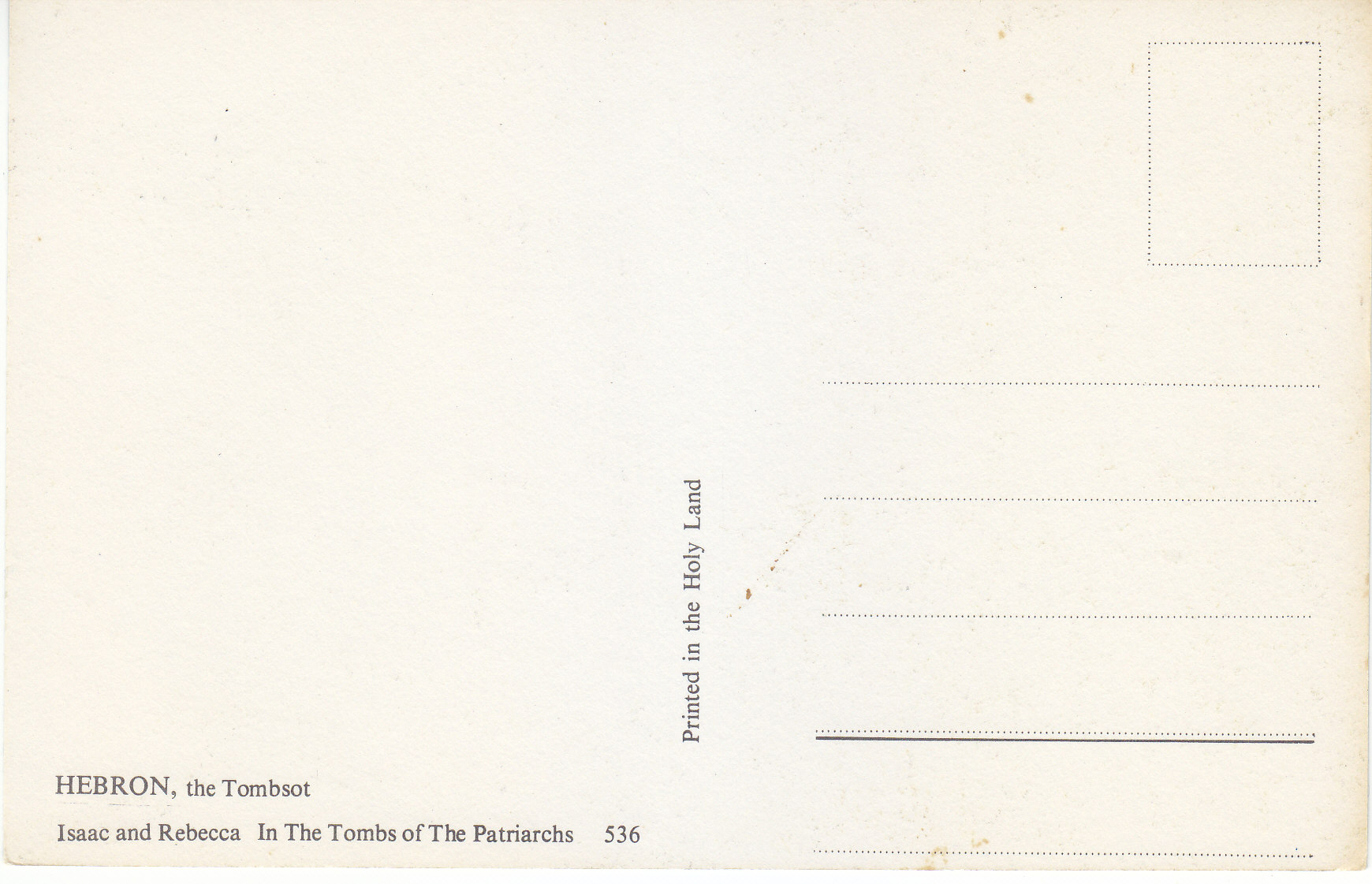 POSTCARD #129 The Tombs of Isaac and Rebecca in the Tomb of the Patriarchs, Hebron [Israel]. 536. Printed in the Holy Land. 3.75" x 5.75" EXC