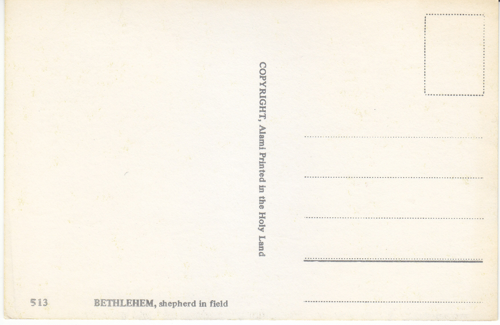 POSTCARD #130 Shepherd in Field, Bethlehem [Israel]. 513. Copyright Alami. Printed in the Holy Land. 5.75" x 3.75" EXC