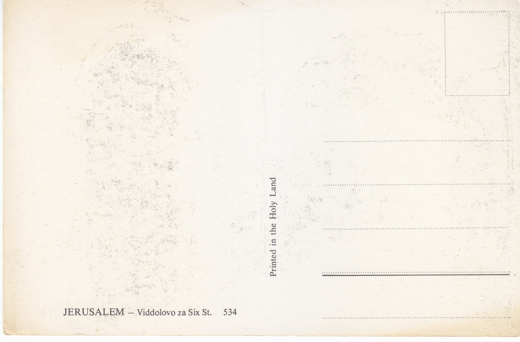 POSTCARD #174 Viddolovo za Six St., Jerusalem [Israel]. 534. Printed in the Holy Land. 5.75" x 3.75" EXC