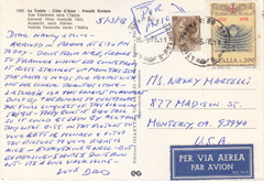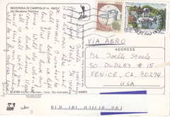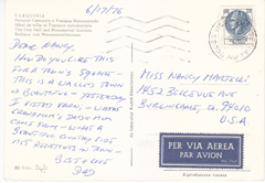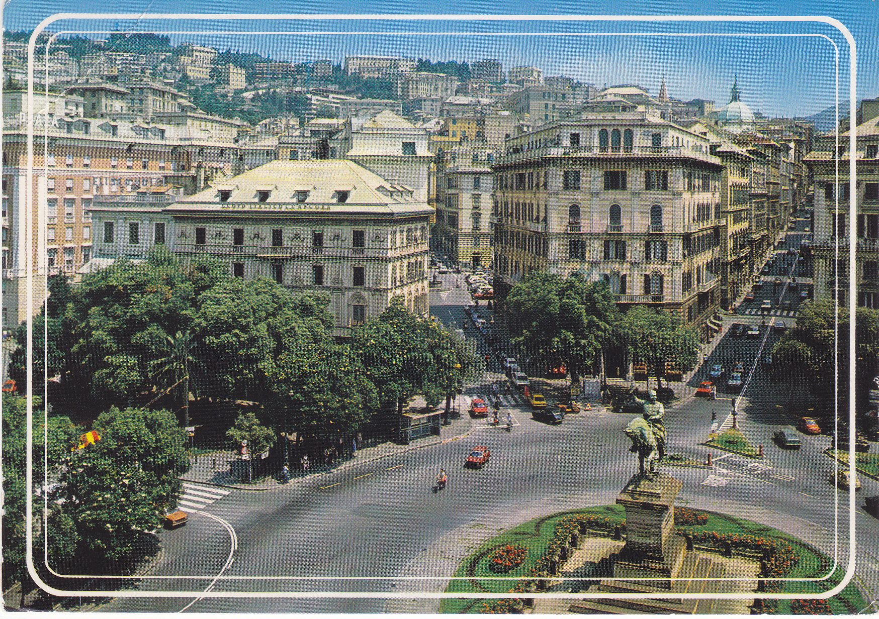 POSTCARD #207 Piazza Corvetto, Genova [Genoa, Italy]. Ligurcolor. [Address partly illegible due to mailing label]. Cartoline-Tel. 393703-Genova [Genoa, Italy]. 5.75" x 4" GD