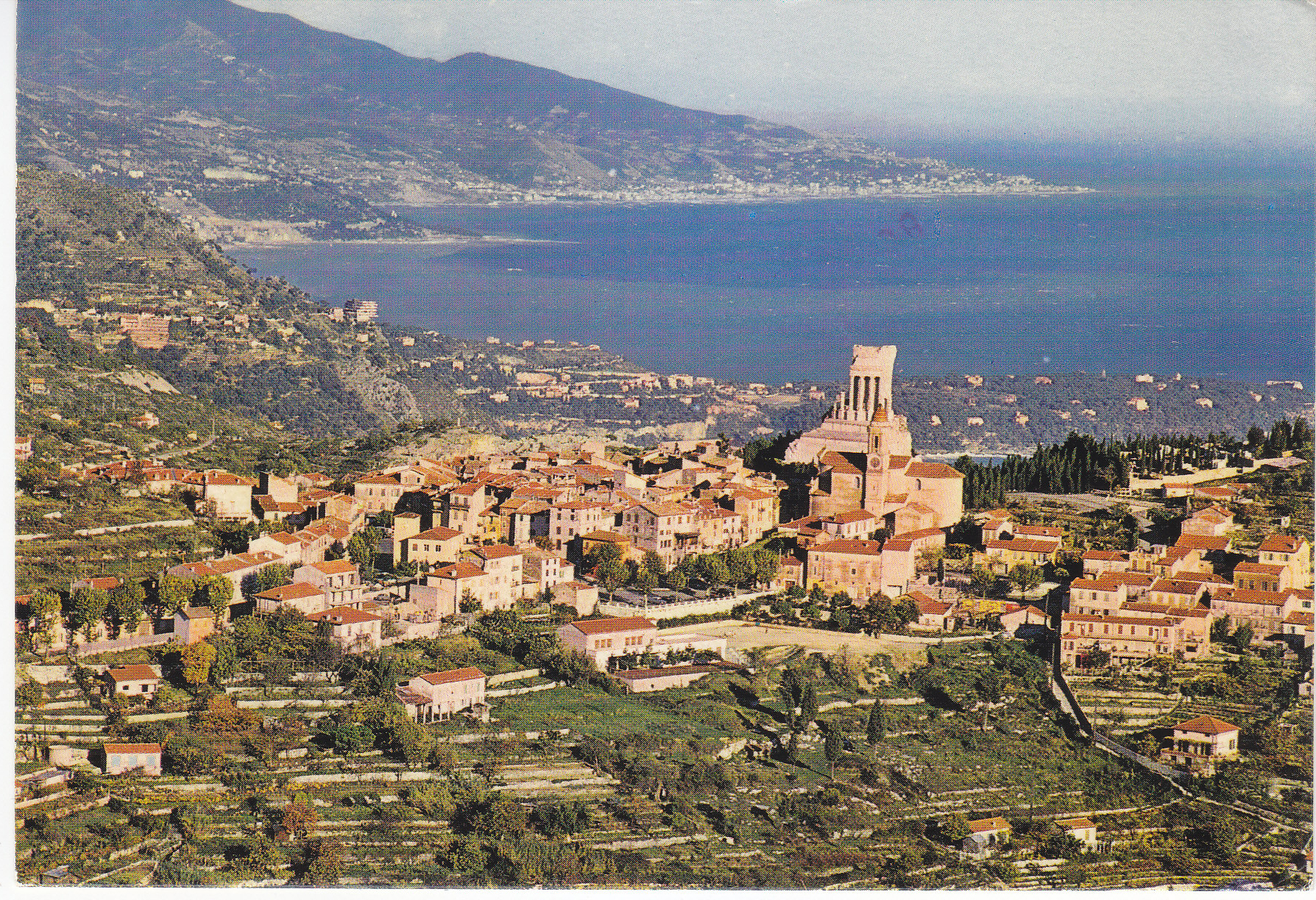 POSTCARD #222 La Turbie, Côte d'Azur, French Riviera, view towards Italy [Italy]. 1026. Editions Gilletta, Tel. 88.25.02. 8 Rue de Suisse, Nice [France]. Reproduction interdite. 6" x 4" EXC