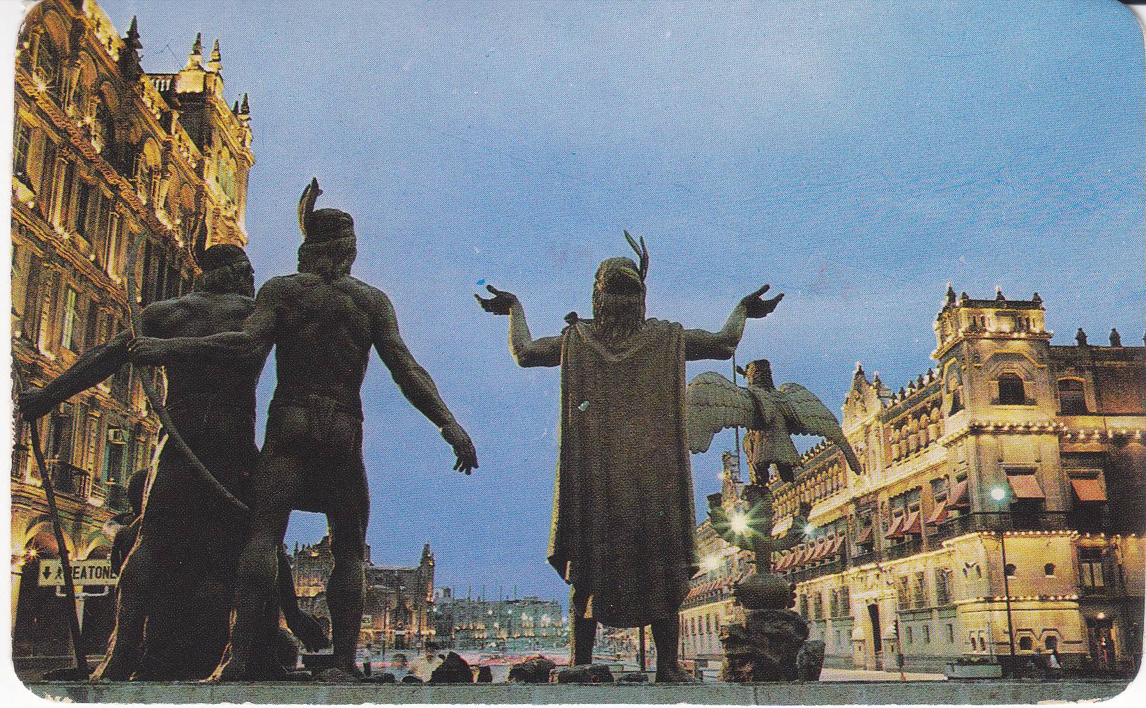 POSTCARD #334 Monument to the Founders of Tenochtitlan, México, D.F. Foto: Salvador Fematt. Tarjeta Postal Vistacolor. Lito en México. ©Ammex Asociados, S.A. Apartado 273, México. D.F. 5.5" x 3.25" VG