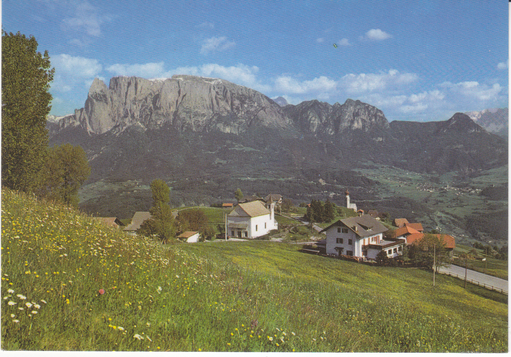 POSTCARD #335 Chiesetta del Santuario Maria Saal in Longostagno sul Renon con vista sullo Sciliar Alto Adige [Little Church of the Sanctuary of Maria Saal in Longostagno on the Renon Plateau with a view of Mt. Sciliar and the upper Adige River]. Longostagno, South Tirol, Italy. Druck: Ferrari-Auer, Bozen. 6" x 4" EXC