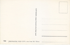POSTCARD #143 Old City, seen from Mount of Olives, Jerusalem [Israel]. 503. Copyright Alami. Printed in the Holy Land. 5.75" x 3.75" EXC