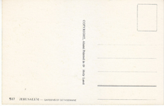 POSTCARD #144 Garden of Gethsemane, Jerusalem [Israel]. 517. Copyright Alami. Printed in the Holy Land. 5.75" x 3.75" EXC