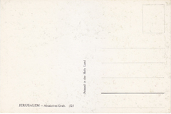 POSTCARD #172 Absaloives Grab [Tomb of Absaloives], Jerusalem [Israel]. 525. Printed in the Holy Land. 5.75" x 3.75" EXC