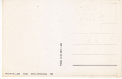 POSTCARD #112 Inside the Dome of the Rock, Jerusalem [Israel]. 527. Printed in the Holy Land. 3.75" x 5.75" EXC
