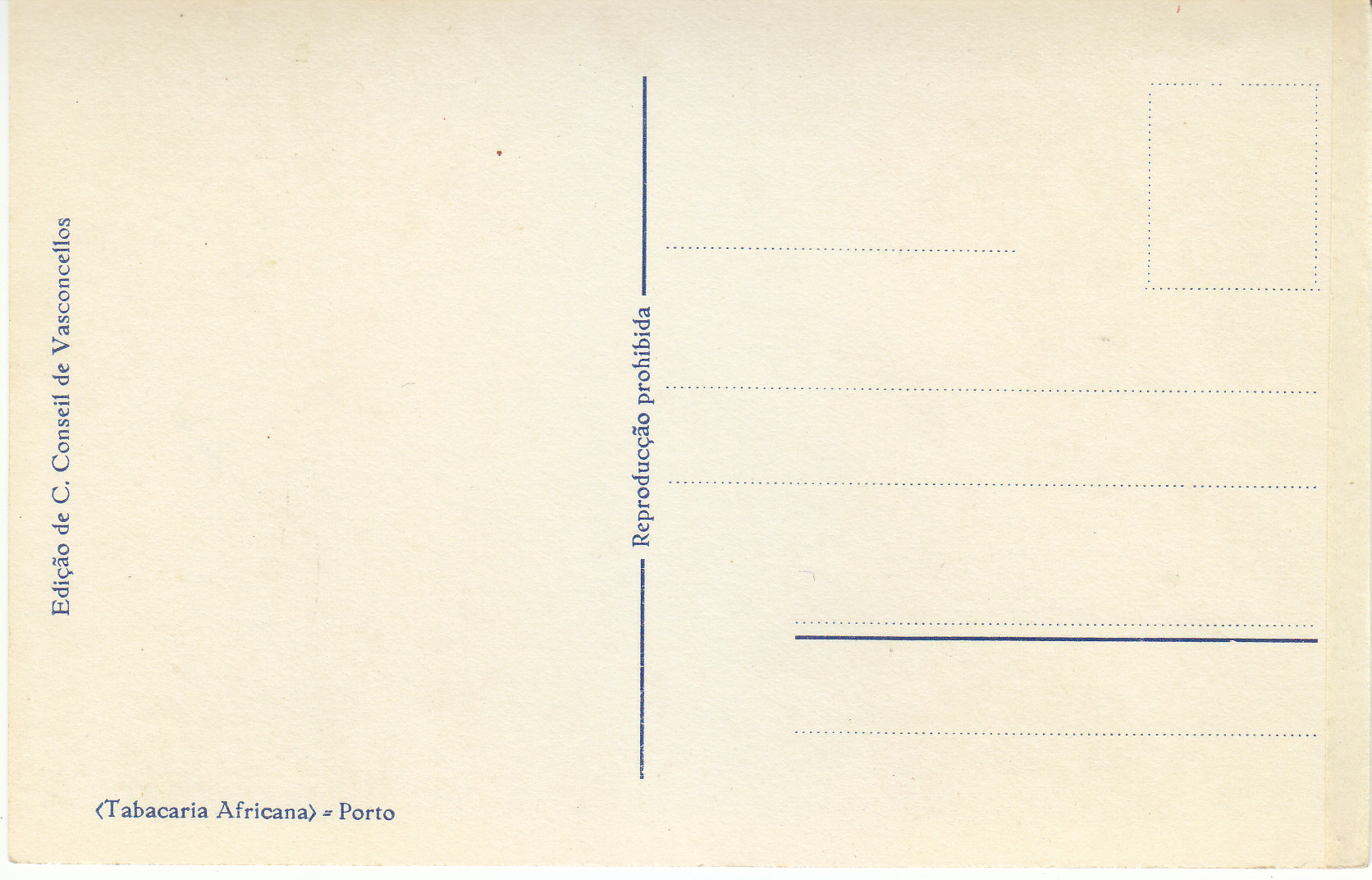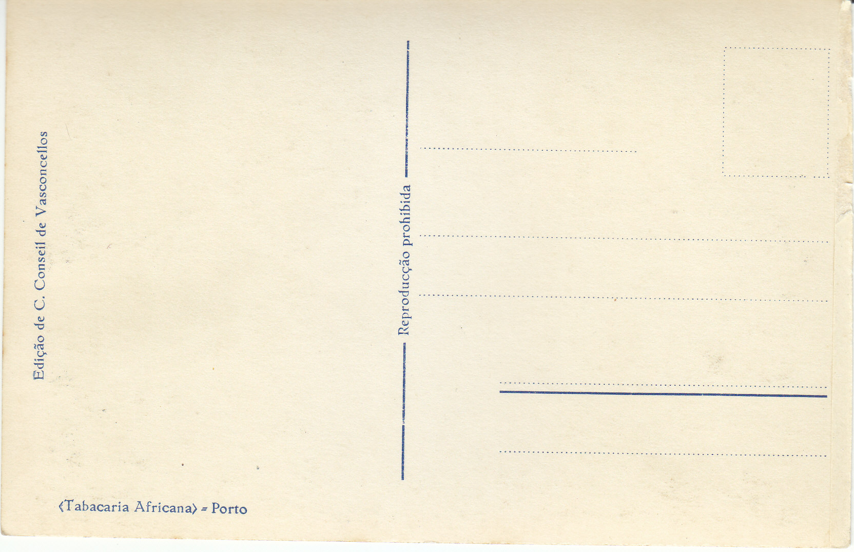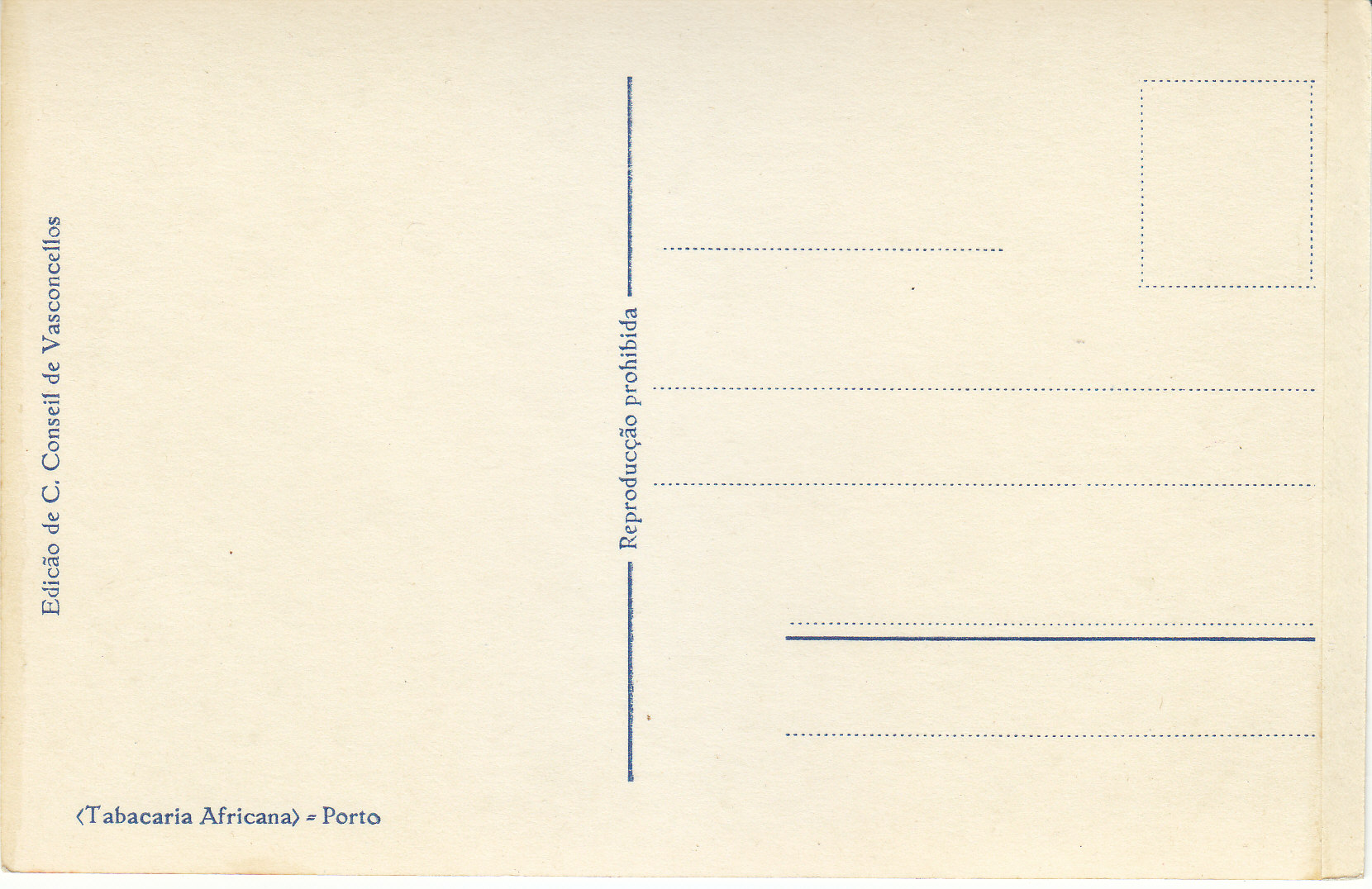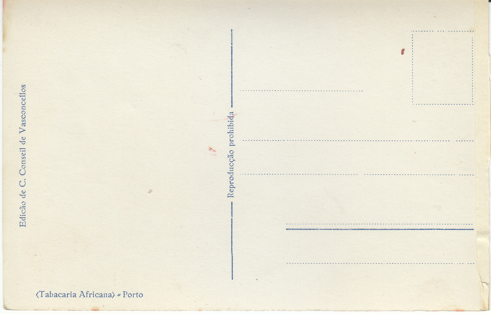 POSTCARD #002 Edição de C. Conseil de Vasconcellos. Tabacaria Africana. Porto [Portugal]. 5.5" x 3.5" GD