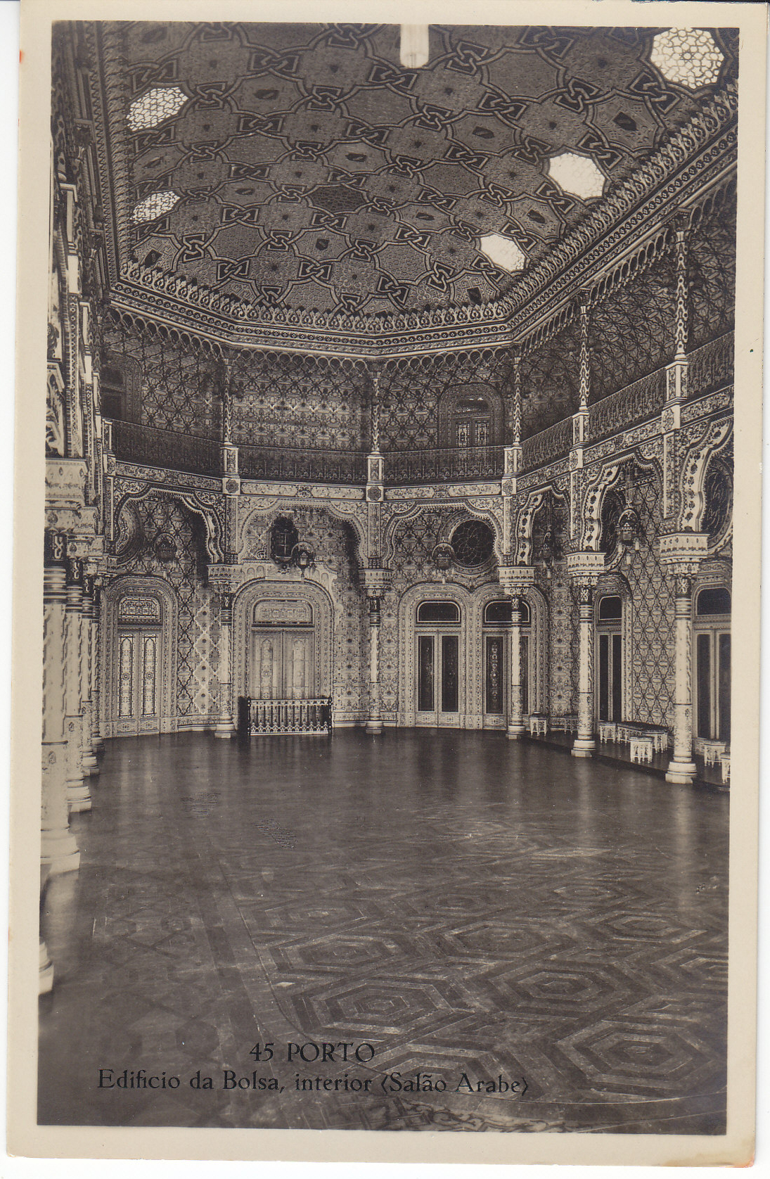 POSTCARD #008 45 Porto, Edificio da Bolsa, interior, Salao Arabe, Edição de C. Conseil de Vasconcellos. Tabacaria Africana. Porto [Portugal]. 5.5" x 3.5" VG