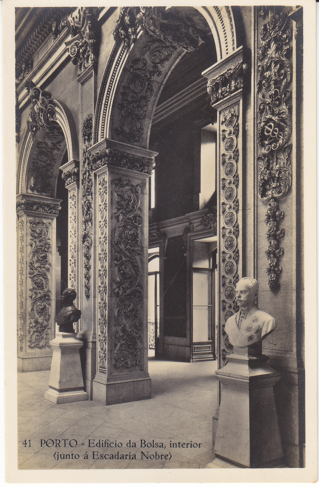 POSTCARD #012 41 Porto, Edificio da Bolsa, interior, Junto a Escadaria Nobre, Edição de C. Conseil de Vasconcellos. Tabacaria Africana. Porto [Portugal]. 5.5" x 3.5" VG
