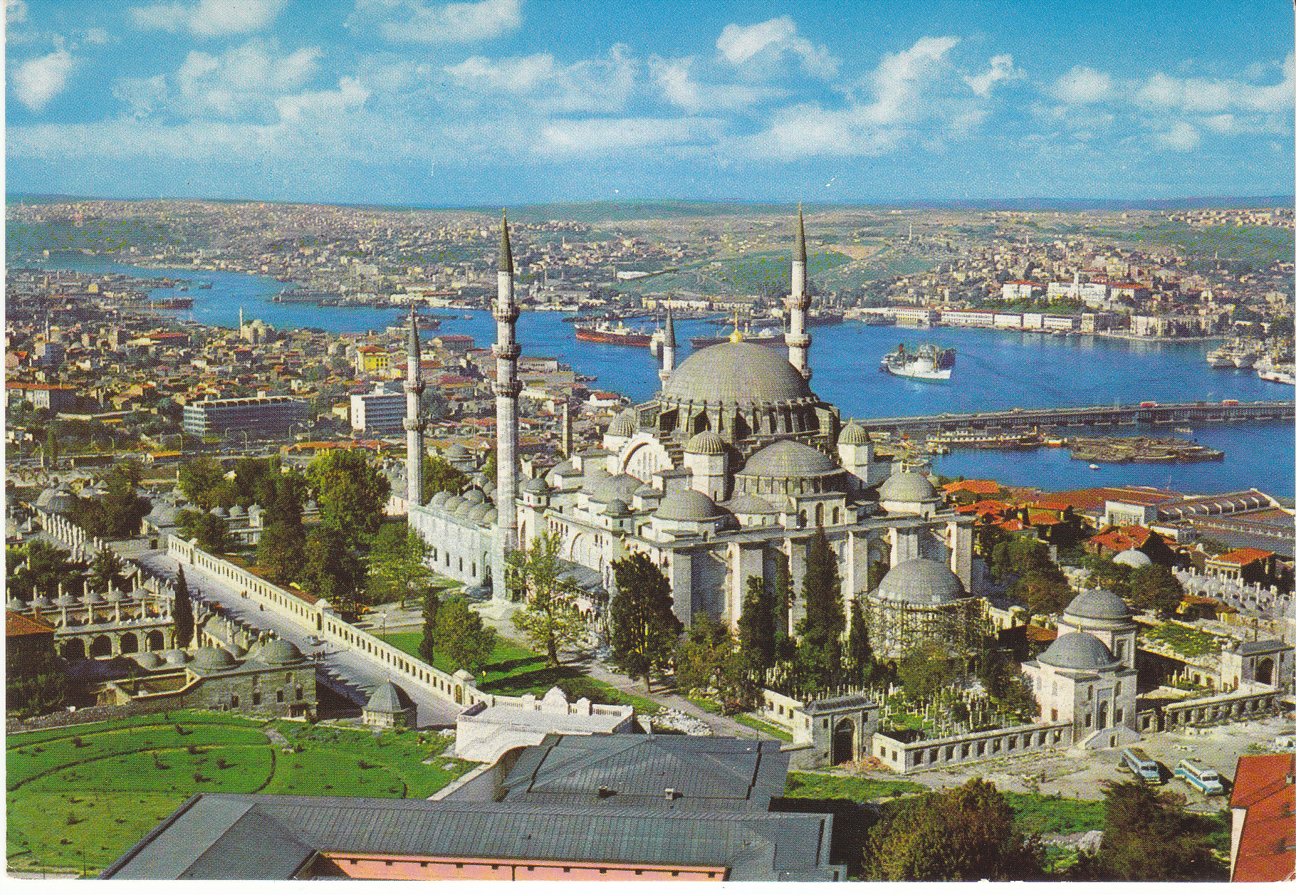 POSTCARD #119 The Mosque of Soliman the Magnificent and the Golden Horn, Istanbul [Turkey]. Her Hakki Mahfuzour. Keskin Color. Kartpostalcilik Limited Şirkiti. 49. Ankara Caddesi, No. 98, Istanbul Tel.: 27 34 06. Güzel Sanatlar. Keskin Color Ltd. Şti. Matabaasi. 6" x 4" EXC
