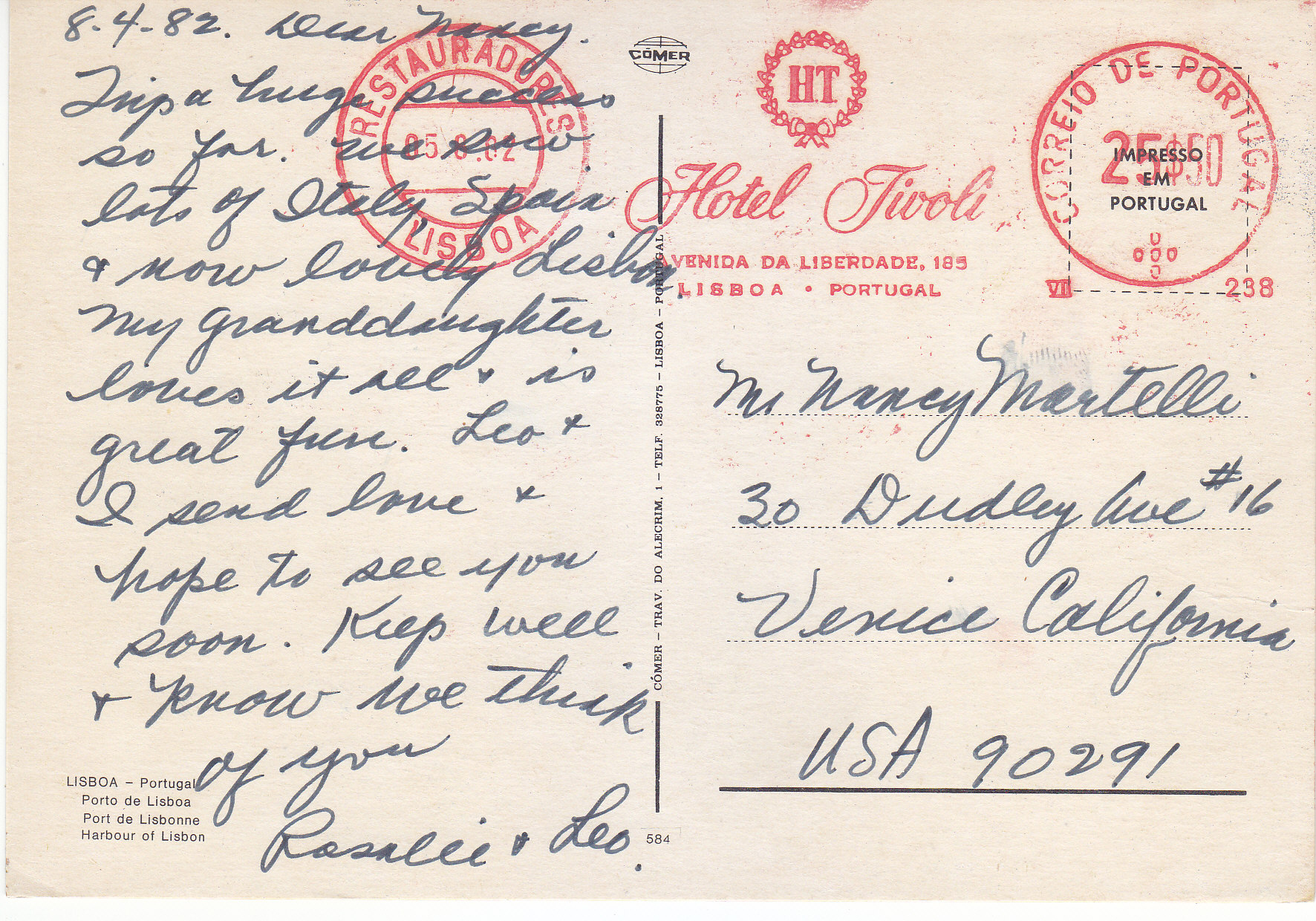POSTCARD #153 Harbor of Lisbon, Lisboa [Lisbon, Portugal]. 584. Comer-Trav. Do Alecrim, Telf. 328775, Lisboa, Portugal. 6" x 4" EXC